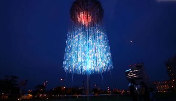 这个是知名日本艺术团队teamLab创作,将崭新互动科技融入装置悬挂于日本香川县高松市海边、高达7米的《teamLab Crystal Fireworks》,作品采用teamLab独创、崭新的互动视觉形体塑造(Interactive Visual Sculpting)技术,融合艺术、科技与创意,带来最大型的4D互动体验...